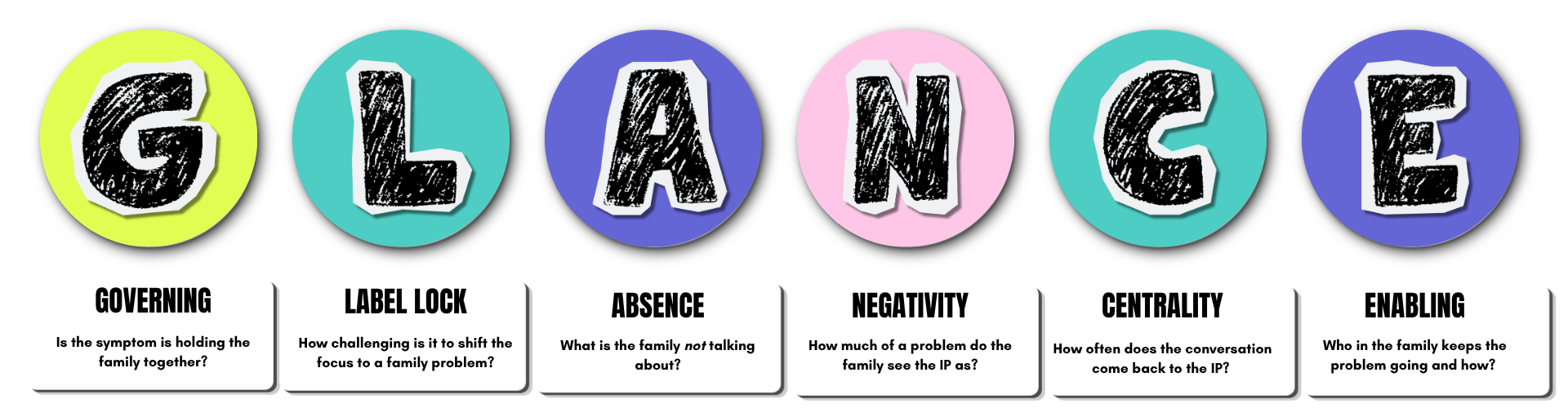 It’s a six-part scan I complete within 24 hours of the first session. Each item is scored from 0 to 3, giving a total that helps determine how carefully to challenge the family’s narrative.
