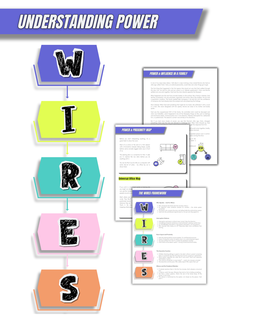 The WIRES Framework is a practical family therapy worksheet for identifying power dynamics and decision-making roles within a family.